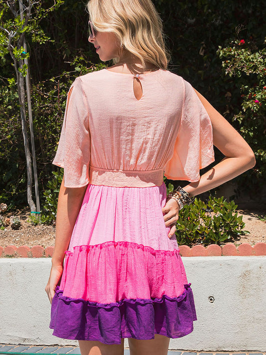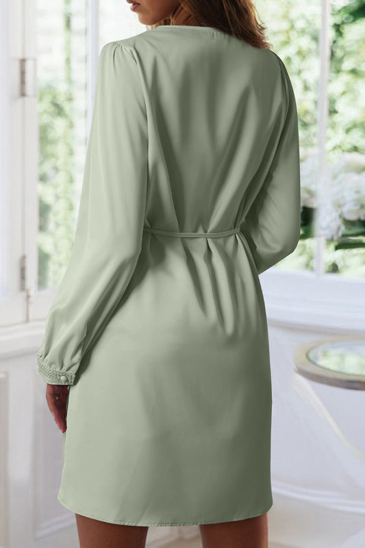 V-Neck Long Sleeve Lantern Sleeve Dress