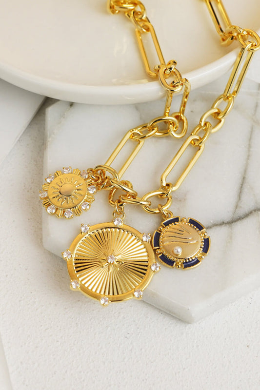 Zircon Sun Pendant Chunky Chain Necklace
