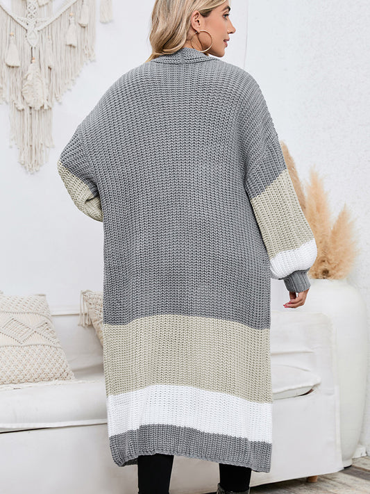Color Block Round Neck Long Sleeve Top and Long Pants Set