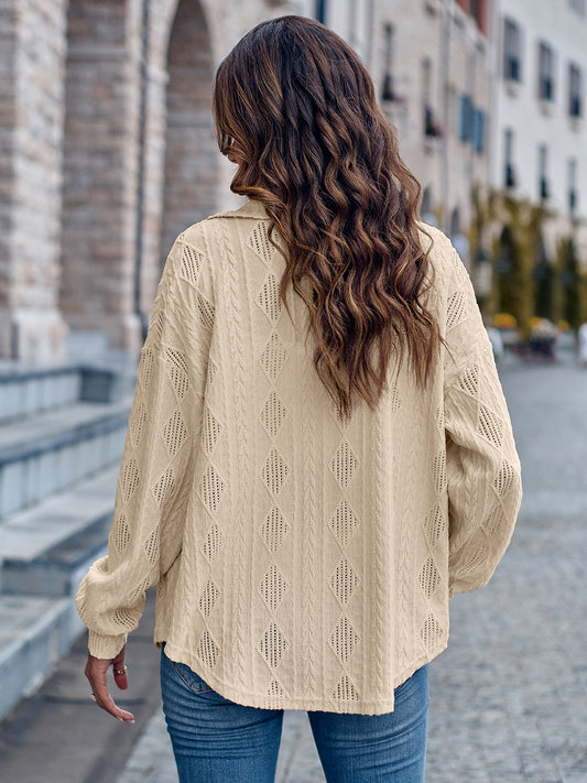 Dropped Shoulder Round Neck Long Sleeve Blouse