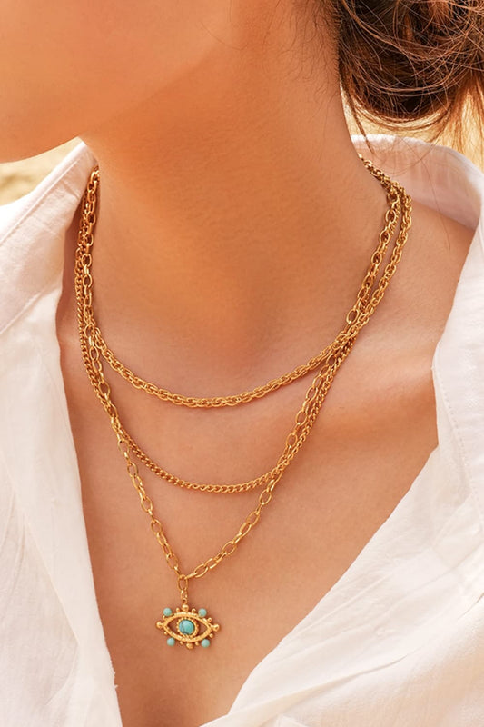 Evil Eye Design 18K Gold Plated Pendant Necklace