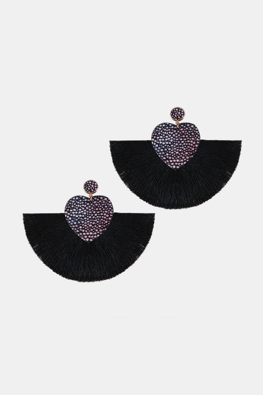 Fringe Detail Football Shape Wooden Dangle Earrings