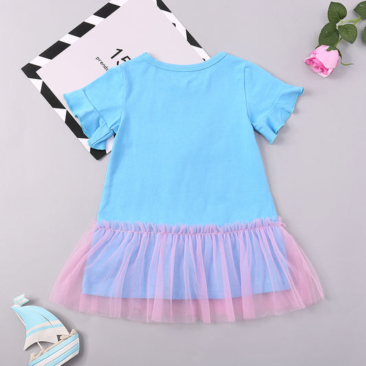 Flamingo Graphic Short Sleeve Spliced Mesh Dress