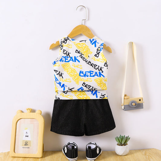 Baby Two-Tone Hoodie and Letter Graphic Joggers Set