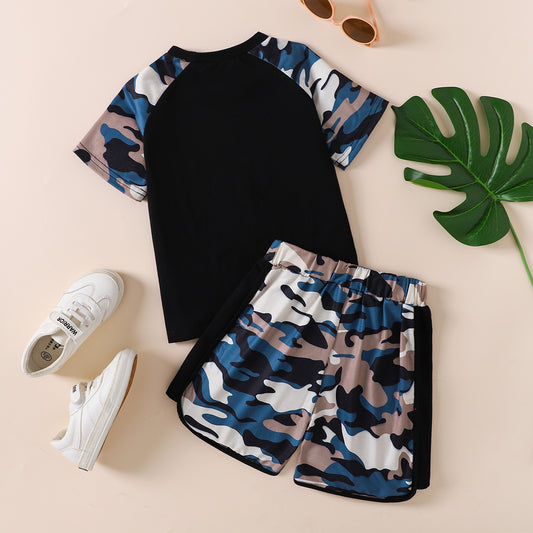 HELLO BOY Graphic Tee and Camouflage Shorts Set