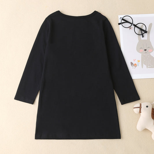 Unicorn Graphic Round Neck Long Sleeve Mini Dress