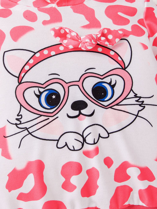 Girls Animal Print Graphic Hoodie and Joggers Set