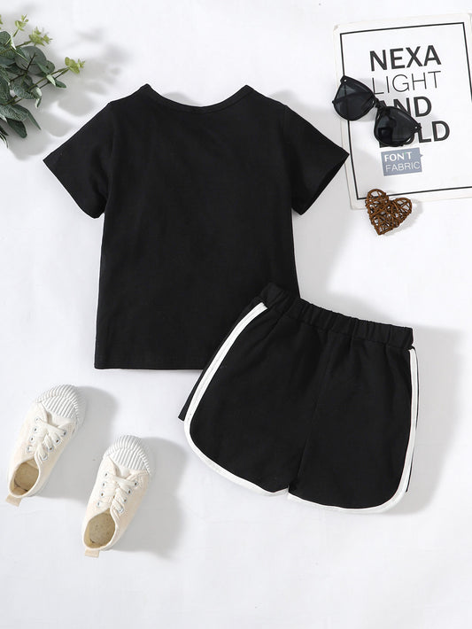 Kids Heart Print T-Shirt and Side Stripe Shorts Set