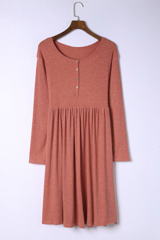 Plus Size Round Neck Long Sleeve Button-Up Midi Dress