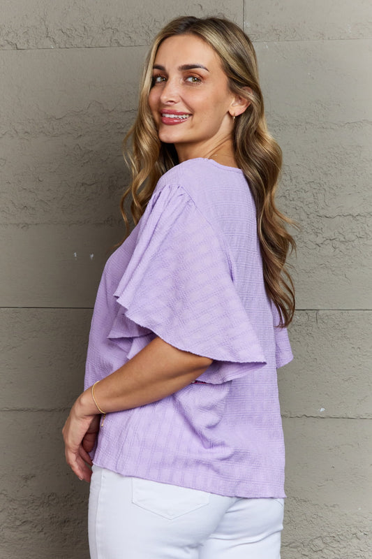 Plus Size Tie Neck Flounce Sleeve Blouse