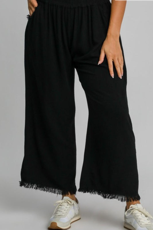 Umgee Full Size Linen Blend Elastic Waistband Wide Leg Pants Plus Size