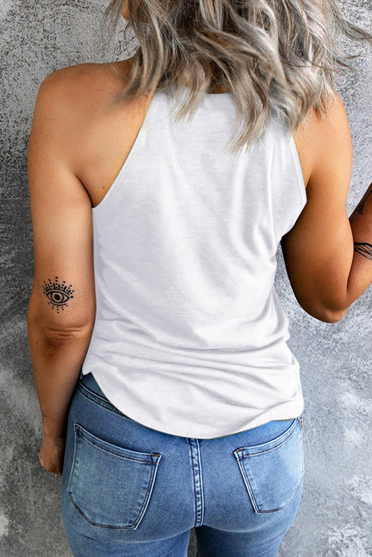 Round Neck Dancing Pumpkin Head Skeleton Graphic Tank