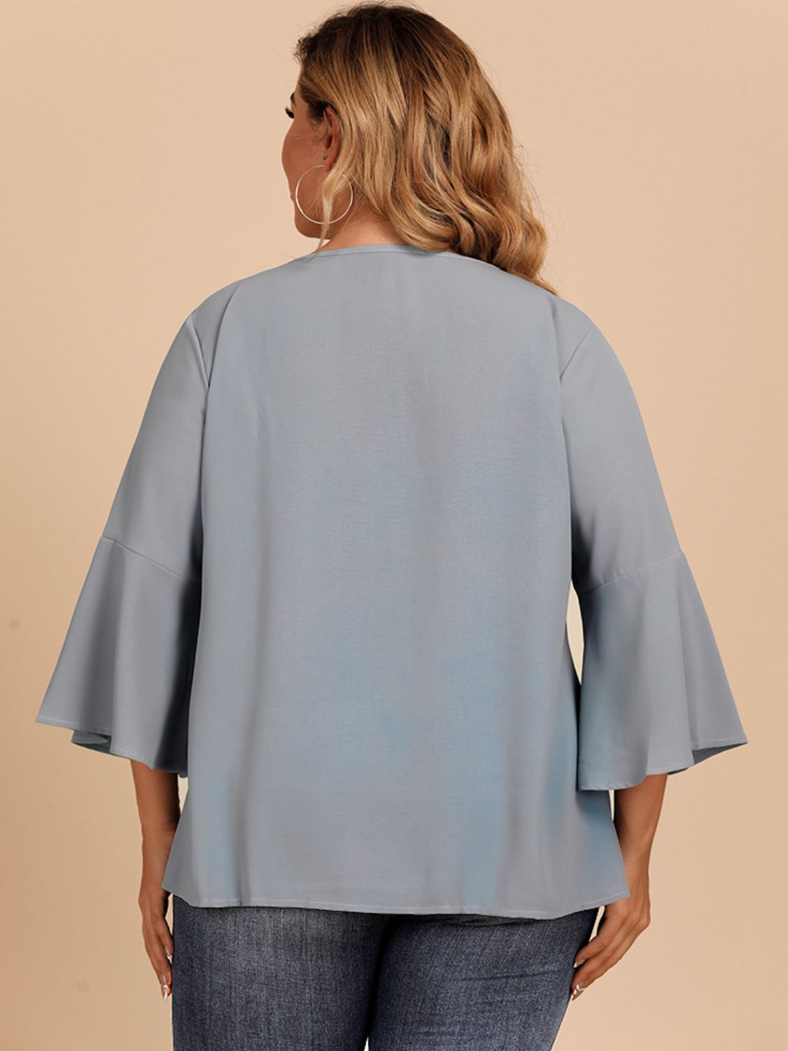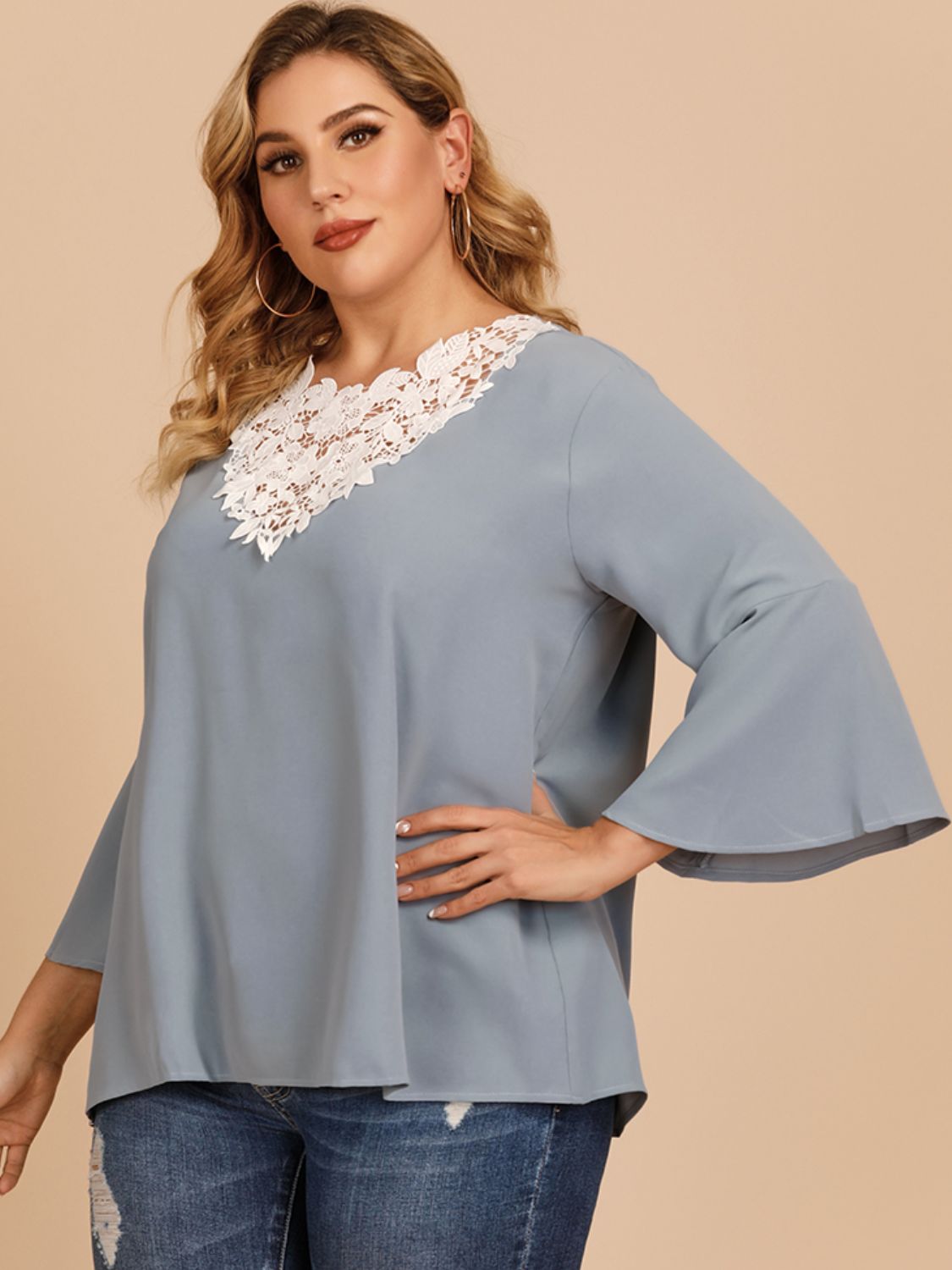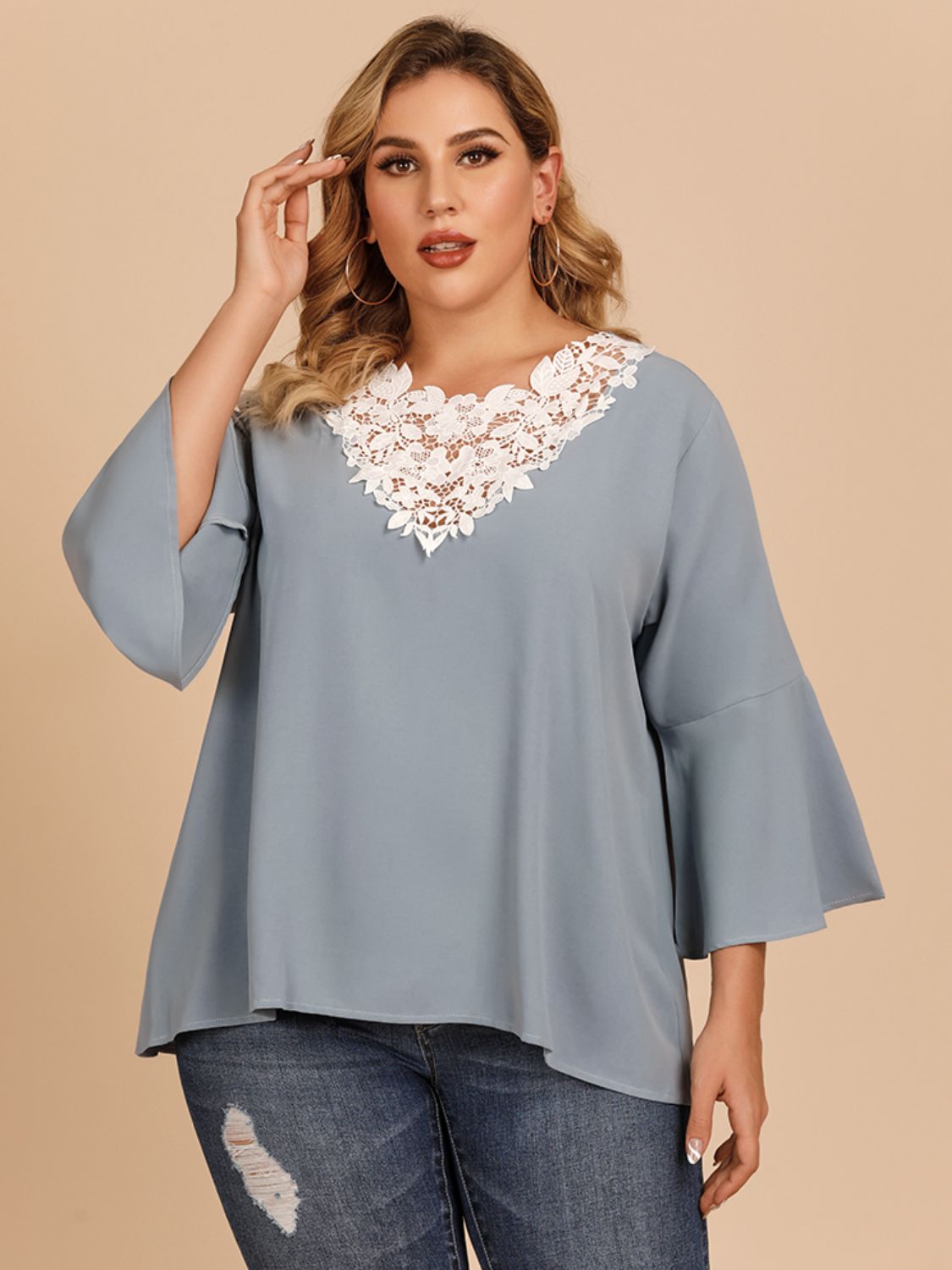 Plus Size Contrast Spliced Lace Three-Quarter Sleeve Blouse