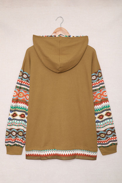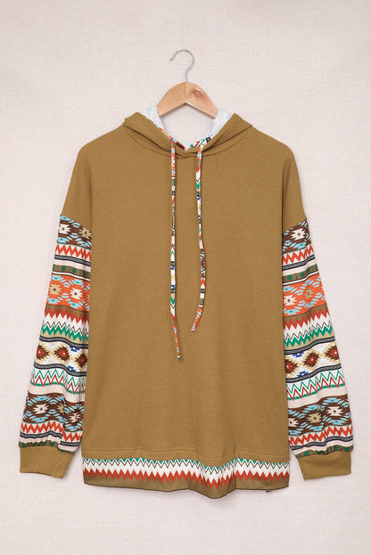 Plus Size Printed Side Slit Waffle-Knit Hoodie
